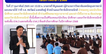 วันที่ 27 พฤศจิกายน 2568 เวลา 13.00 น. นายธาตรี พิบูลมณฑา ผู้อำนวยการวิทยาลัยเทคนิคอุบลราชธานี มอบหมายให้ นายวัฒนกร ไชยพล ครูแผนกวิชาอิเล็กทรอนิกส์ (เพิ่มเติม…)