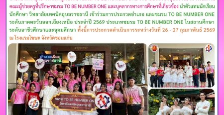 วท.อุบลฯ ร่วมการประกวดเยาวชนต้นเเบบเก่งและดี TO BE NUMBER ONE (TO BE NUMBER ONE IDOL) รุ่นที่ 16 ประจำปี 2569 รอบระดับจังหวัด