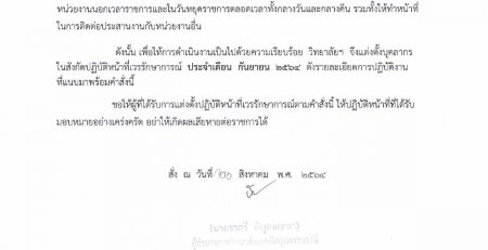 เปลี่ยนแปลงคำสั่งแต่งตั้ง บุคลากรปฏิบัติหน้าที่เวรรักษาการณ์ ภาคกลางวัน ประจำเดือนกรกฎาคม 2564