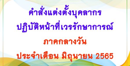 แต่งตั้งบุคคลากรในสังกัดปฏิบัติหน้าที่เวรรักษาการณ์ ภาคกลางวัน ประจำเดือนเมษายน 2565